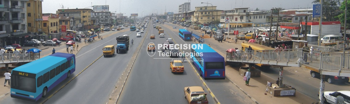 Consequent upon the ITP assignment, LAMATA officially commissioned Precision Technologies Consultants Limited (PTCL) Lagos Nigeria for the World Bank financed consultancy services for the “Detailed Engineering Design and Construction Supervision / Management of BRT System Infrastructural Facilities”. The massive facilities included: 40km BRT Highway Redefined Lane Pavement Structure, Road Widening & Segregation Barriers; 28no Bus Stations; 3no Major Bus Terminals; 1nos Looped Large Bus Depot / Garage; 40km Corridor Service Lane Pavement Structure; 1050no Corridor Street Lighting & 10no Power Substations; Kerb/Curb Painting, Road Marking & Traffic Signages; 30km long Median Chain-link Barrier & Strengthened Overpasses; Stormwater Drainage System.